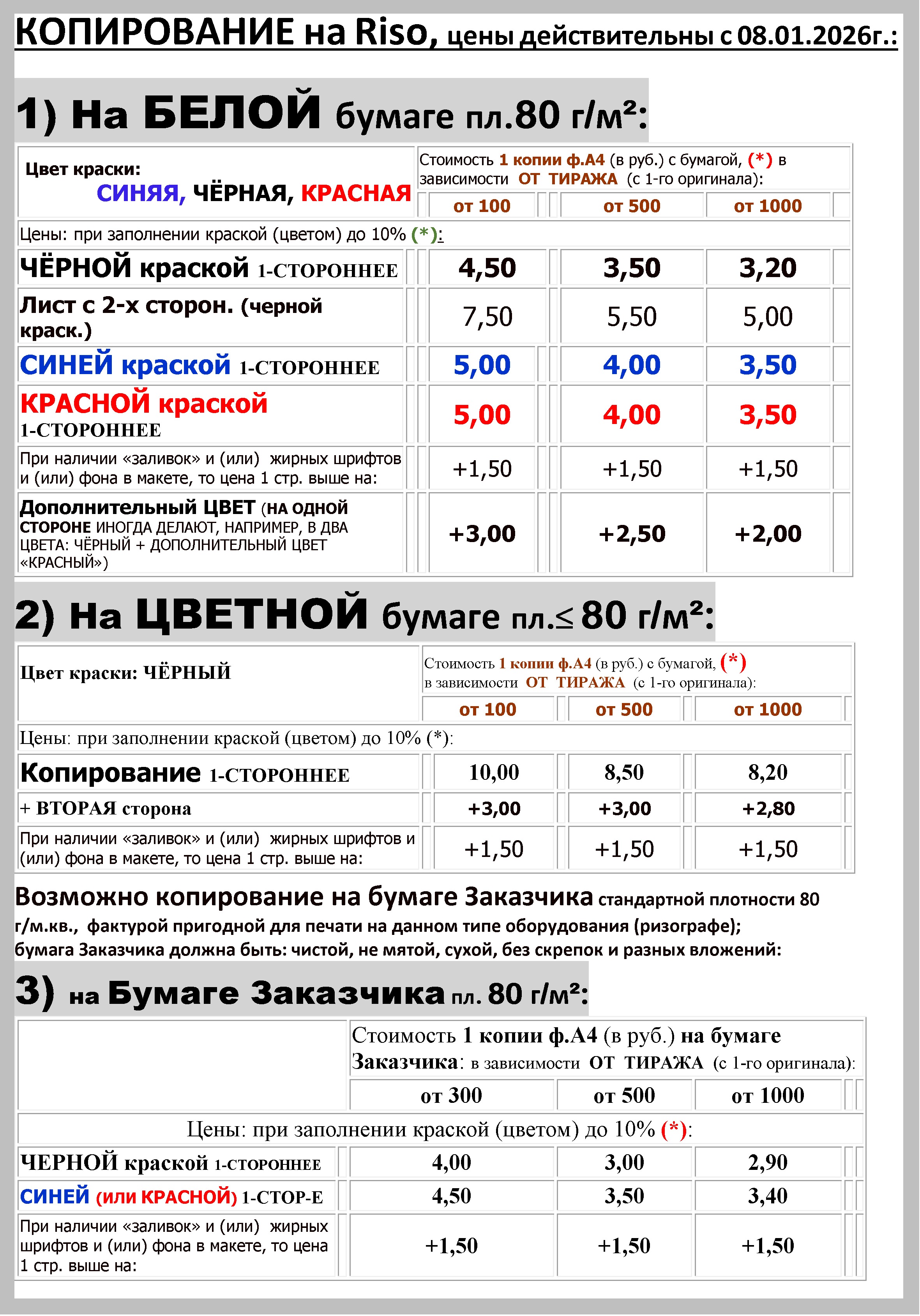 Копирование на Ризографе (Riso) по скорости: от 60 до 120 копий формата А4 за одну минуту.