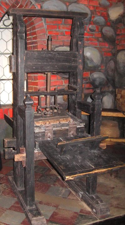 | Гравюра: И. Гутенберг | Первый печатный станок И.Гутенберга |