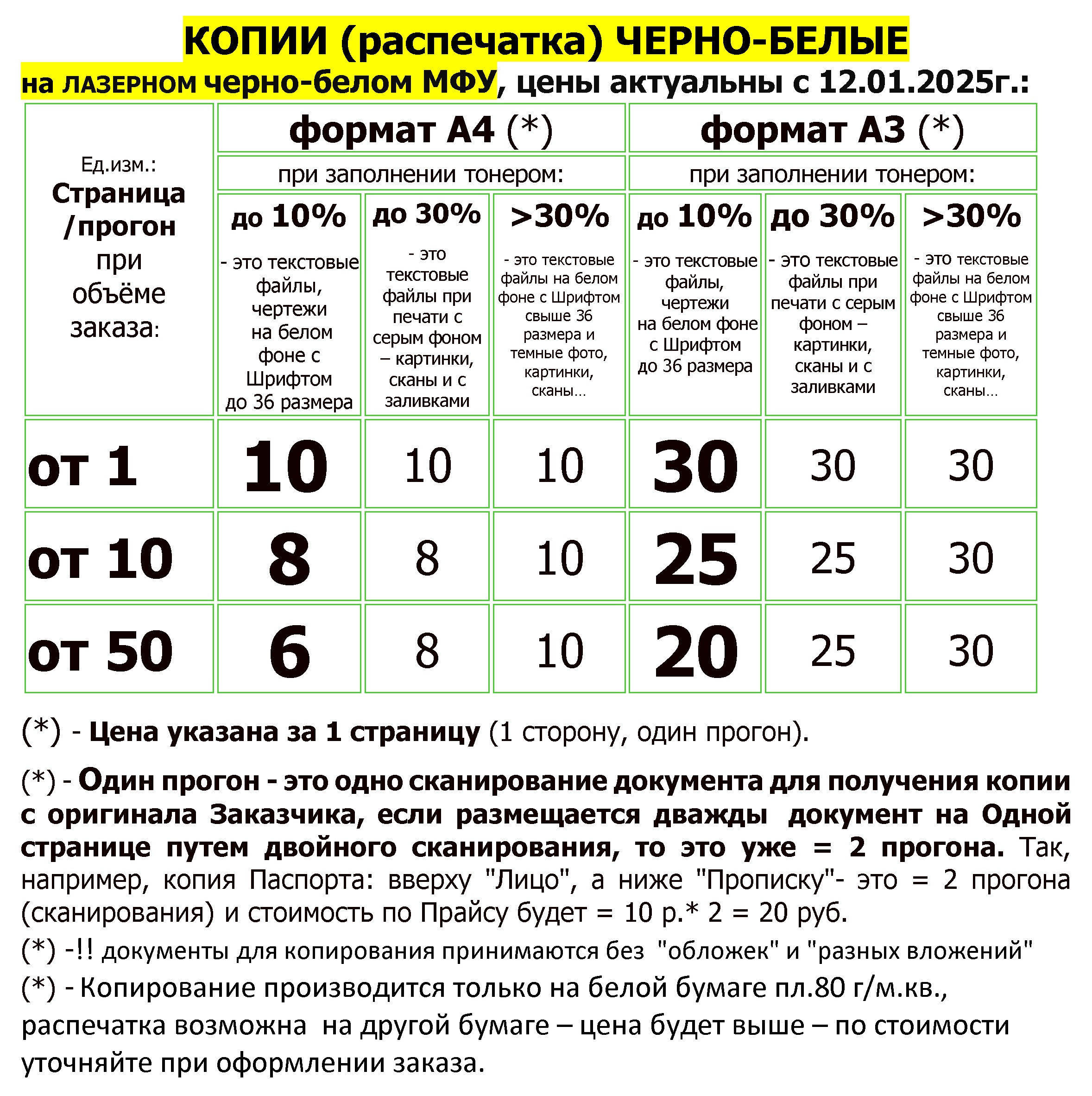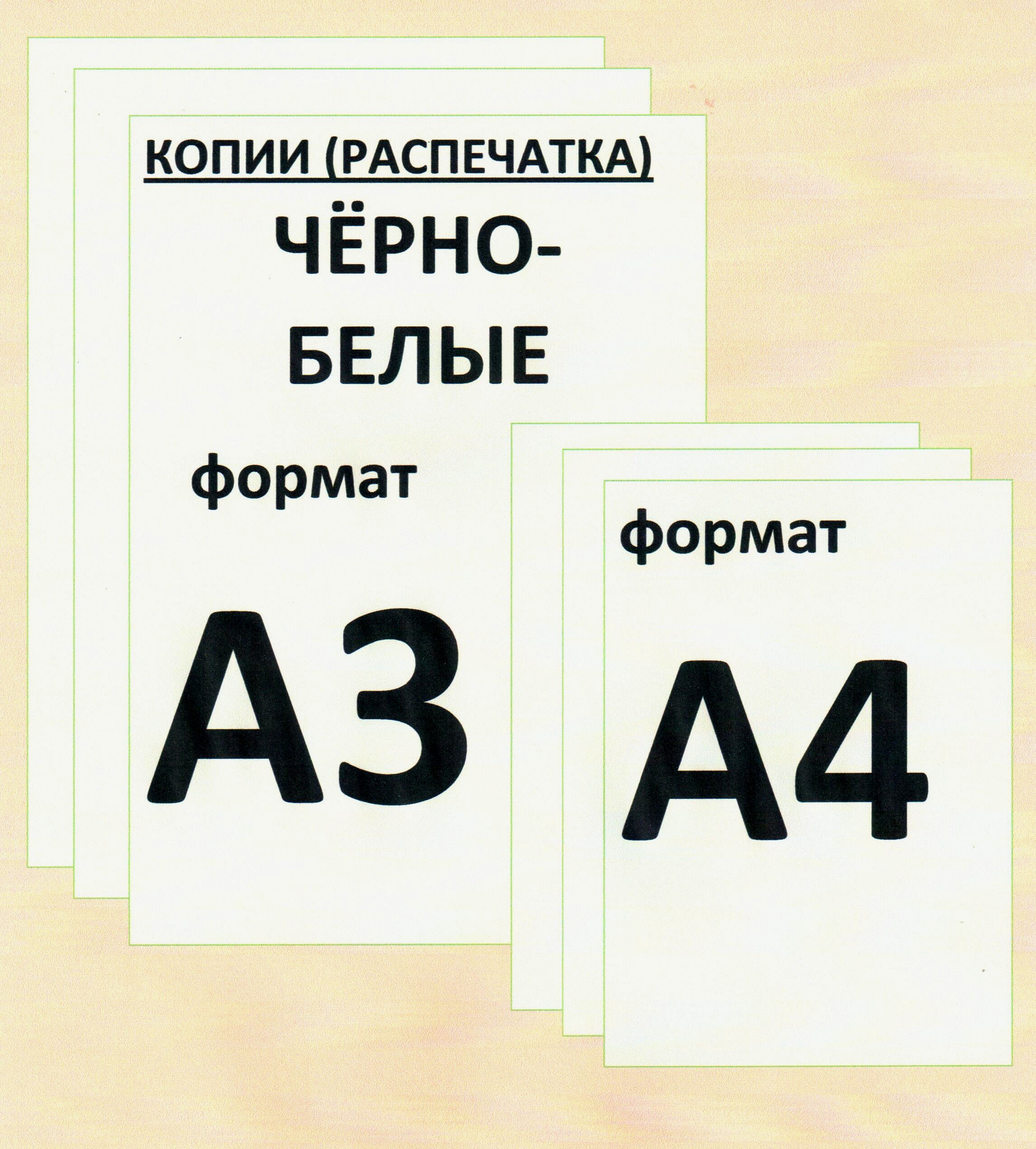 КОПИИ (РАСПЕЧАТКА) черно-белые, ф.А4, А3