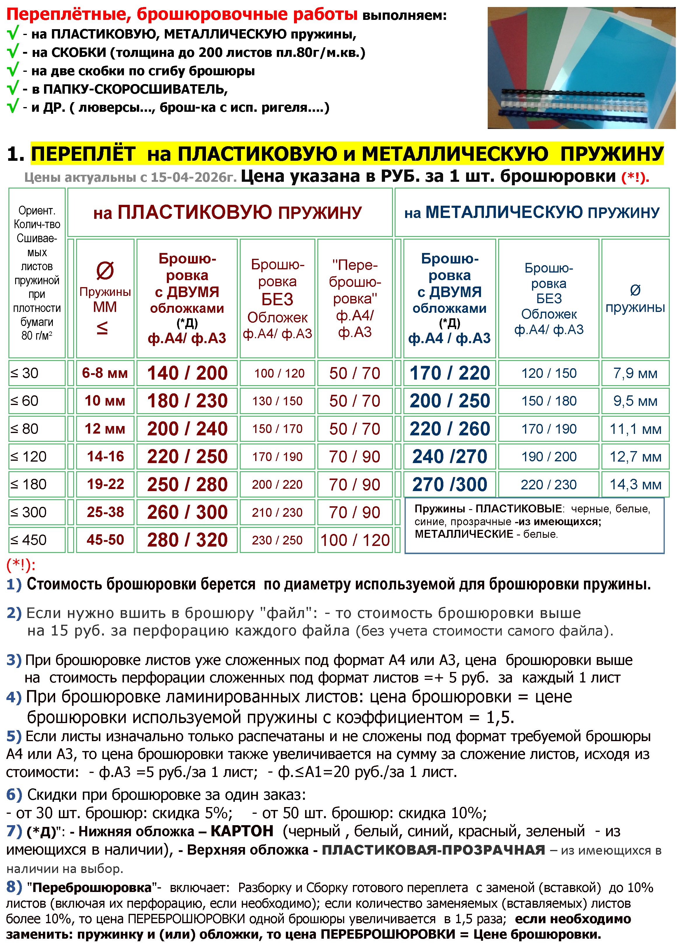 3. количество скрепляемых страниц в Брошюре до 70 страниц ф.А5 (это 17 листов ф.А4 с печатью с 2-х сторон):